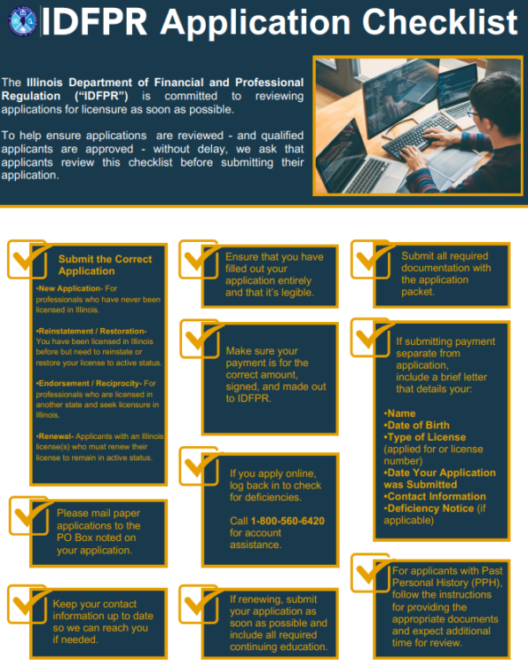 The Illinois Department of Financial and Professional Regulation (IDFPR) regulates more than 1.2 million professionals across over 100 licensed professions, including registered nurses and practical nurses.