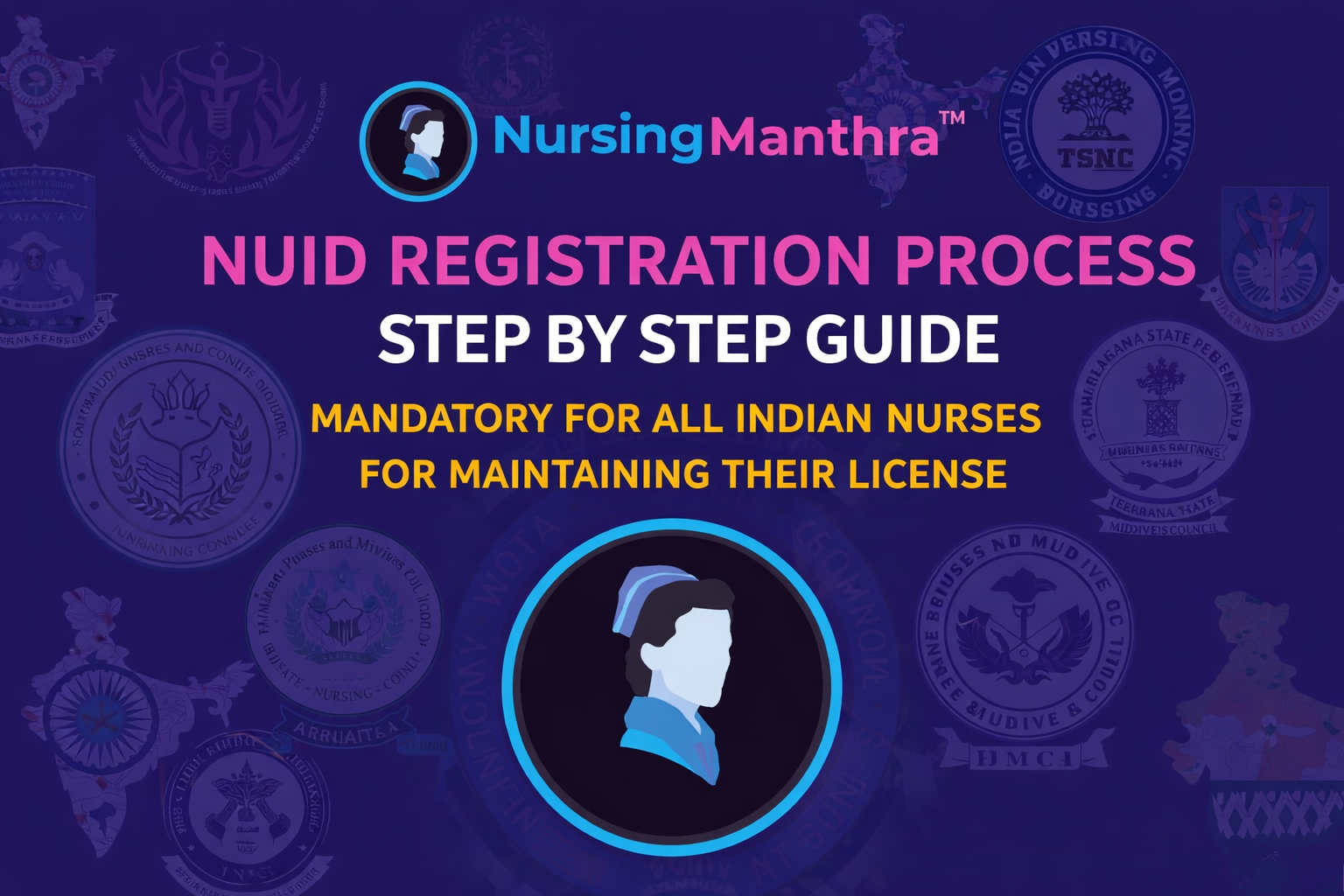 NUID (Nurse Unique Identification Number) registration is an online process by the Indian Nursing Council (INC) where nurses create a unique ID by submitting their education, registration, and identity details through the official INC portal. This is mandatory for license verification, renewal, and international processing.