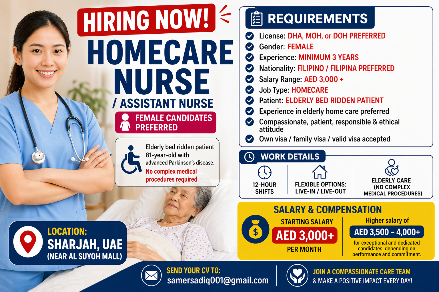 Homecare Nurse / Assistant Nurse Vacancy in Sharjah UAE – Elderly Care Job
