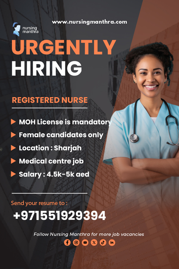 Urgent RN Vacancy in Sharjah | MOH License Mandatory